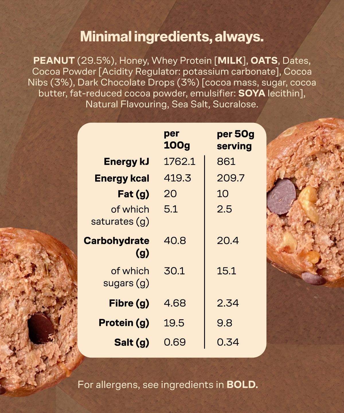 crunchy peanut butter, chocolate studded with cacao nibs and choc chips. chocolate craving satisfied.